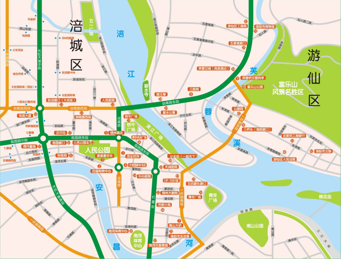 綿陽市公共自行車站臺燈箱分布圖