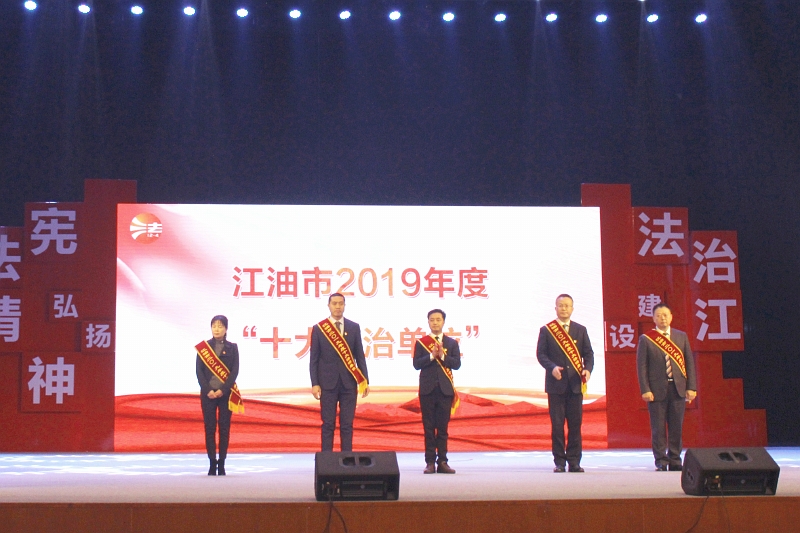 12月4日,江油市舉行了2019年度“十大法治單位”“十大法治人物”頒獎(jiǎng)典禮, 江油市委常委、政法委書記、市委全面依法治市委員會(huì)副主任李海,市人大副主任李山,市政府副市長(zhǎng)、公安局局長(zhǎng)宋進(jìn)勇,市政協(xié)副主席毛彬出席活動(dòng)。市級(jí)各部門、鄉(xiāng)鎮(zhèn)主要負(fù)責(zé)人,司法和行政執(zhí)法部門干部職工代表,企事業(yè)單位干部職工代表,教師、學(xué)生以及群眾代表700余人參加了活動(dòng)。